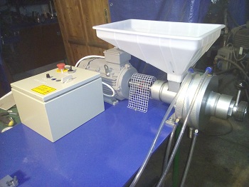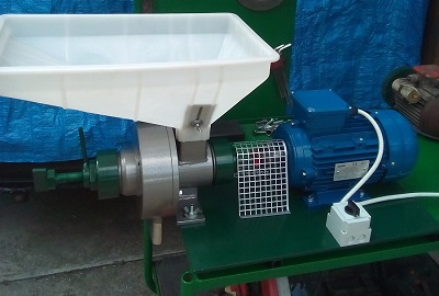 3. Típus Rozsdamentes csigatengely, rozsdamentes őrlőegység, rozsdamentes beömlő garat, rozsdamentes kiömlő garat, kopásálló műanyag bevonatú palástbelsővel. Élelmezési célra megfelel!